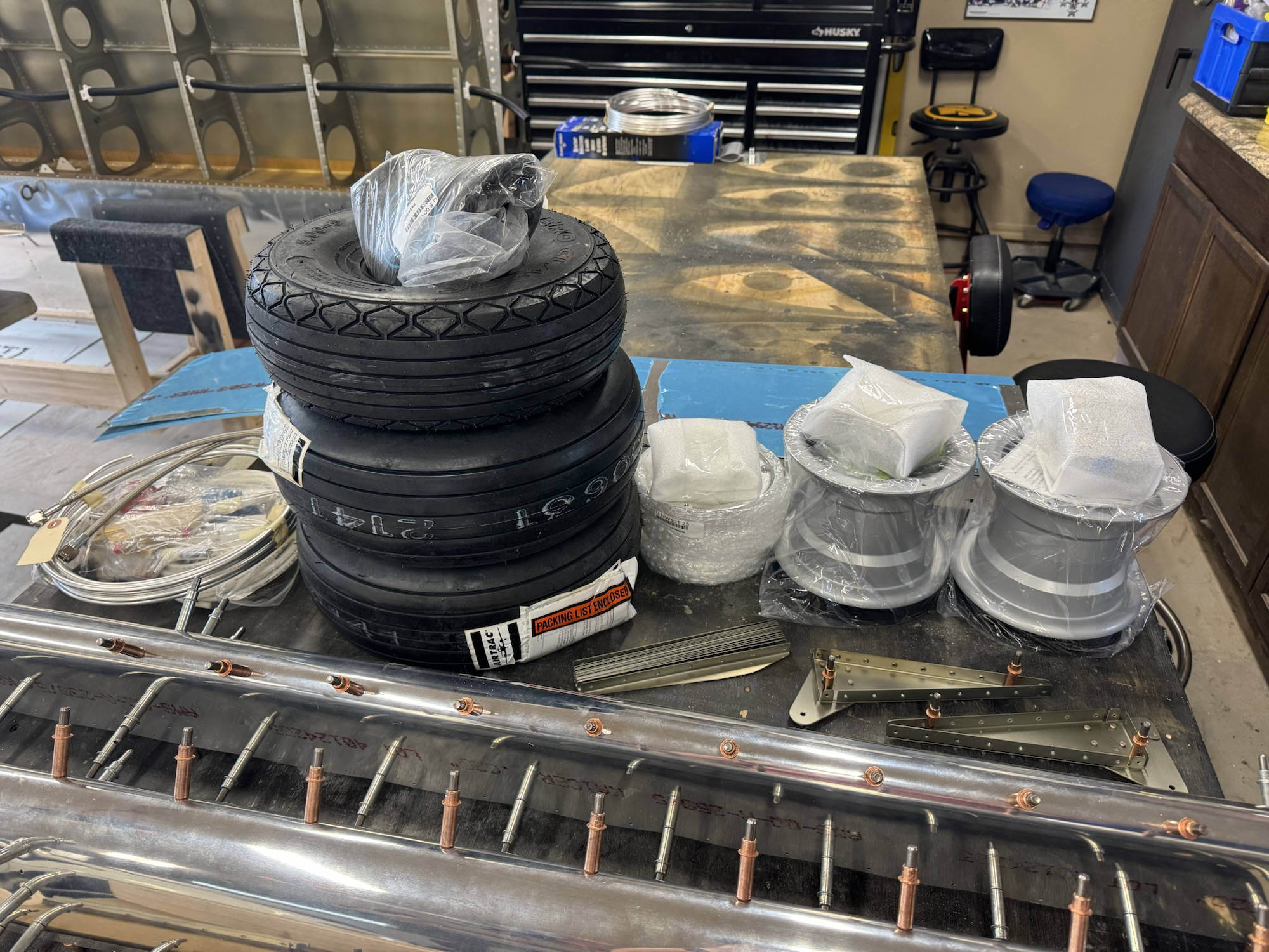 Oh, and my Grove brake kit arrived! I’ve got all of my wheels and brakes for when I get the airplane on its own legs.